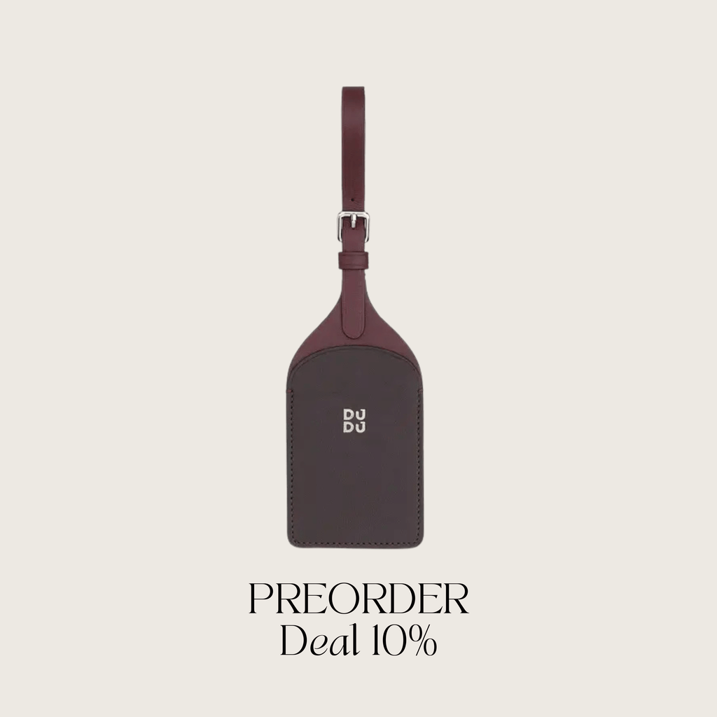 Das perfekte Geschenk für Weltenbummler: Unser stilvoller Kofferanhänger aus dunkelrotem Leder der Marke dudubags mit Personalisierung!