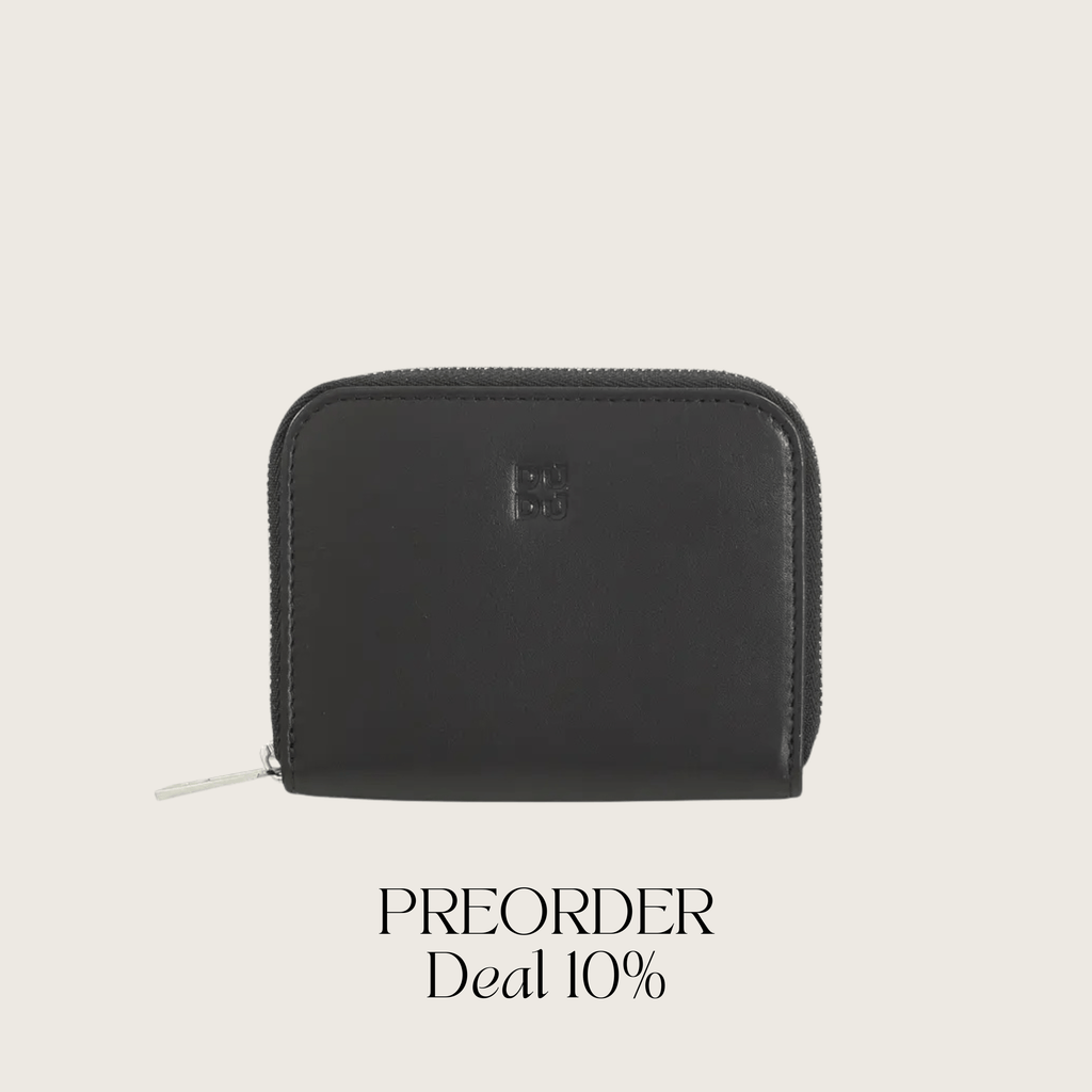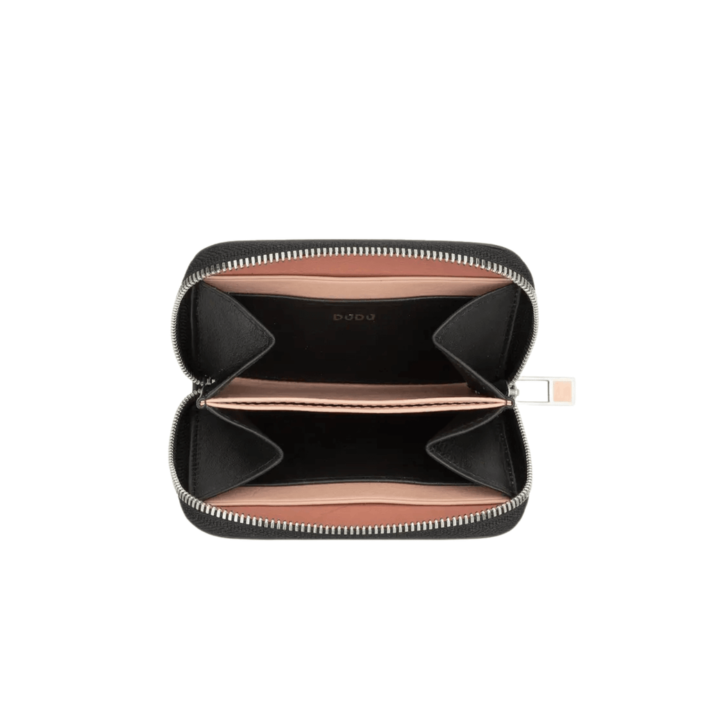Entdecke unser stilvolles Mini Wallet mit Platz für Karten, Scheine und Münzgeld in Schwarz mit Details in elegantem Nude von dudubags – jetzt kostenlos personalisieren!