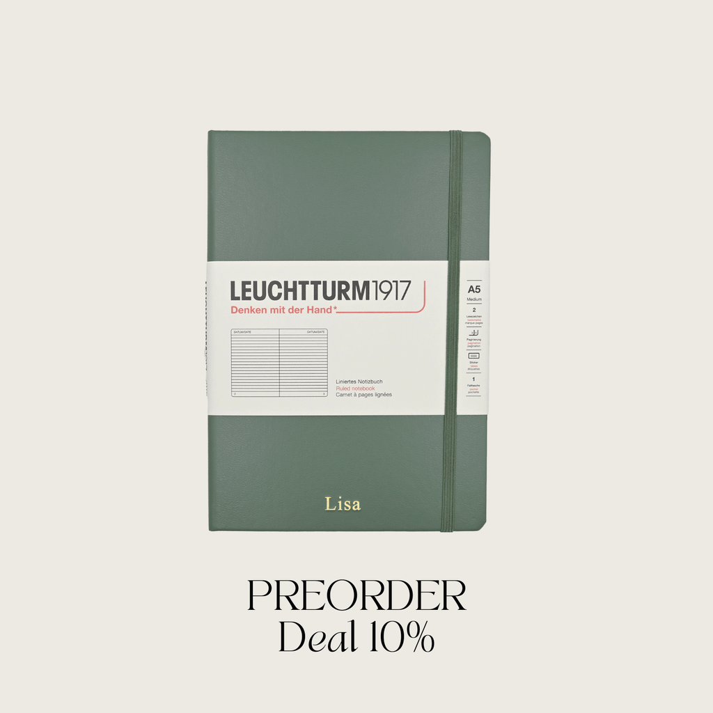 Entdecke das beliebte LEUCHTTURM1917 Notizbuch in Olive-Grün und lasse es kostenlos personalisieren!
