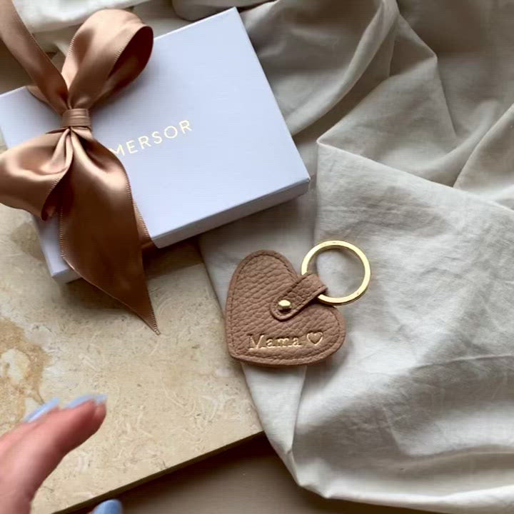 Romantisches Geschenk für Frauen! Entdecke den stilvollen beigefarbenen Herz Schlüsselanhänger aus feinstem Leder bei MERSOR! Jetzt kostenlos mit Deiner Wunschpersonalisierung veredeln und mit MERSOR verschenken!