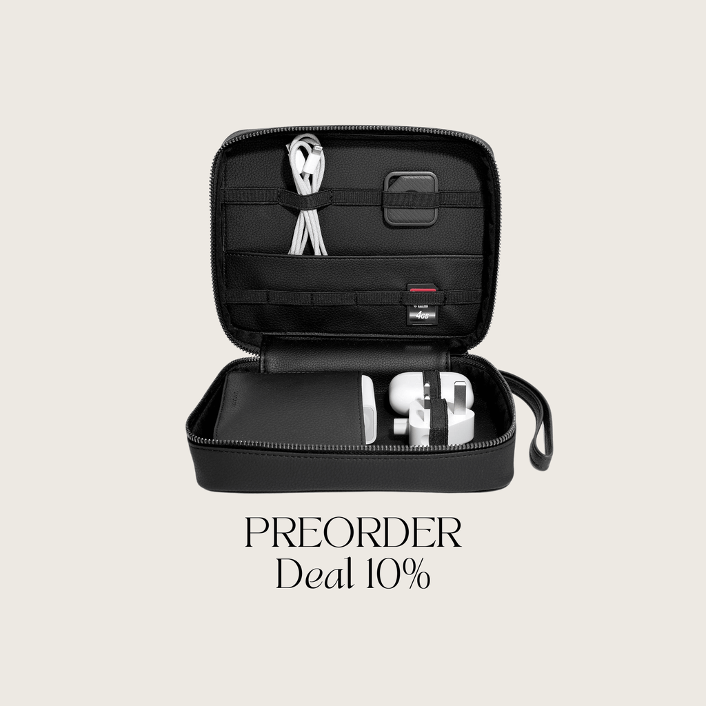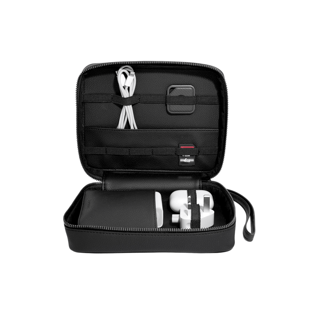 Der Tech-Organizer in Schwarz von Stackers bietet Platz für Deine Kabel, Stecker, SD-Karten, Kopfhörer und mehr und ist personalisierbar mit Namen oder Initialen.